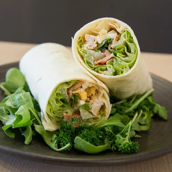 Step 5: Spread a wrap with a dollop of chicken salad. Garnish with a few mandarin oranges and fried noodles and roll up, sealing with a toothpick if necessary.