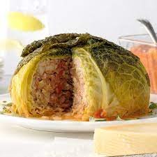 Step 3: Form the meat mixture into a ball and stuff into hallowed cabbage and top with the top of the cabbage.