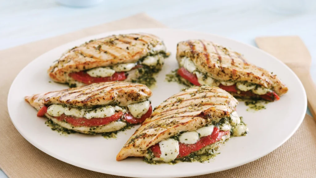 Stuff each chicken breast with the tomato-mozzarella mixture and secure with toothpicks if needed.